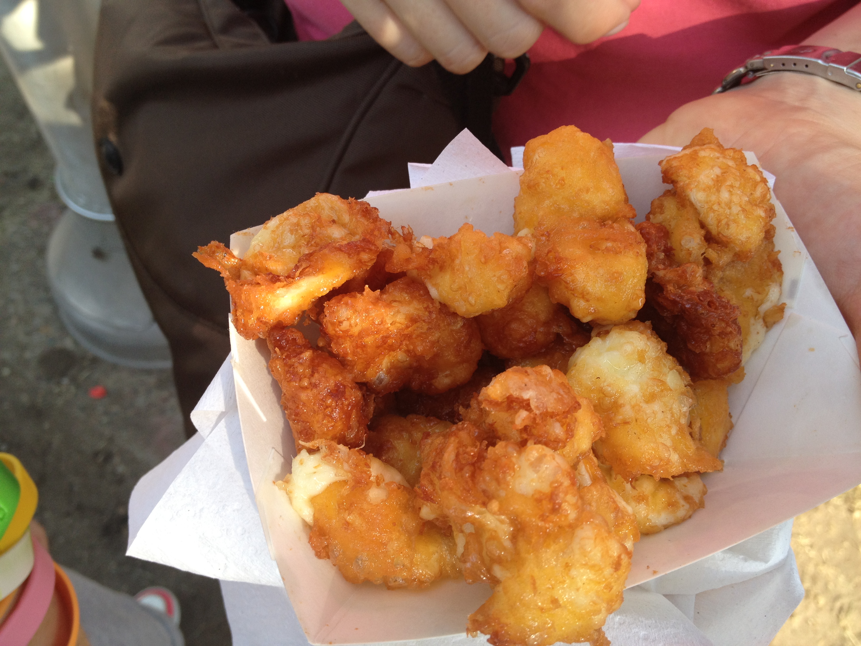 All fairs–big & small–are great fun. The exhibits, the food, the rides, the food (see a theme here?!?!?). Sure corn dogs, fried ice cream, turkey legs, fried candy bars, funnel cake, and corn-on-the cob are great. But cheese curds are DA’ BOMB!