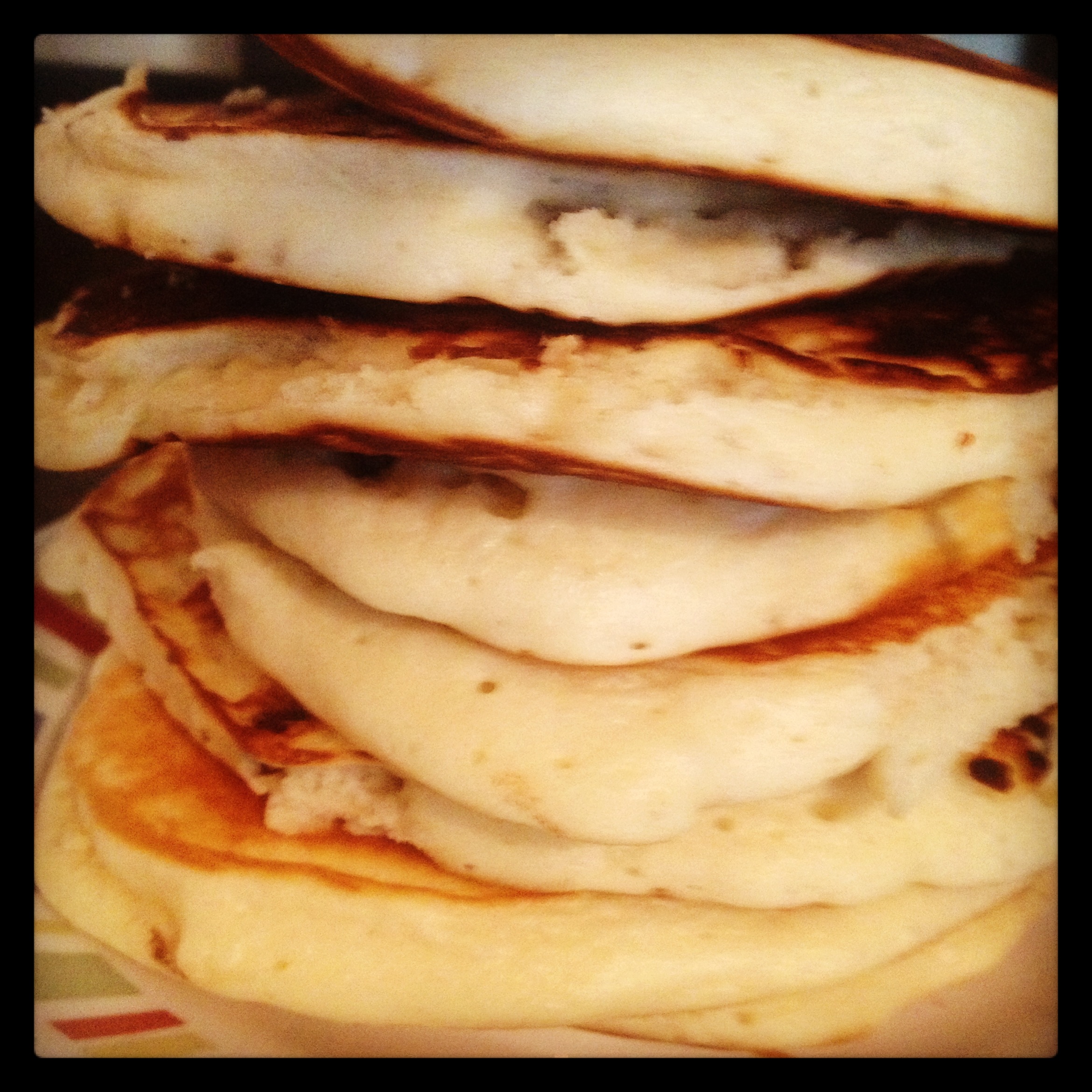 After a bit of nail-biting whisking, we pour the eggs in a skillet and throw some cheese on top! Reese is now in charge of stirring and at this point Morgan has rolled out of bed and–announcing that she feels confident in our ability to finish, Landri went to watch TV with Morgan. Reese and I soon make quick work of our breakfast–which was a resounding success, despite there being only round shaped pancakes. The only negative comment: Landri said that the eggs were “too cheesy.” What the what? Reese, Morgan, and I agreed: NO SUCH THING!