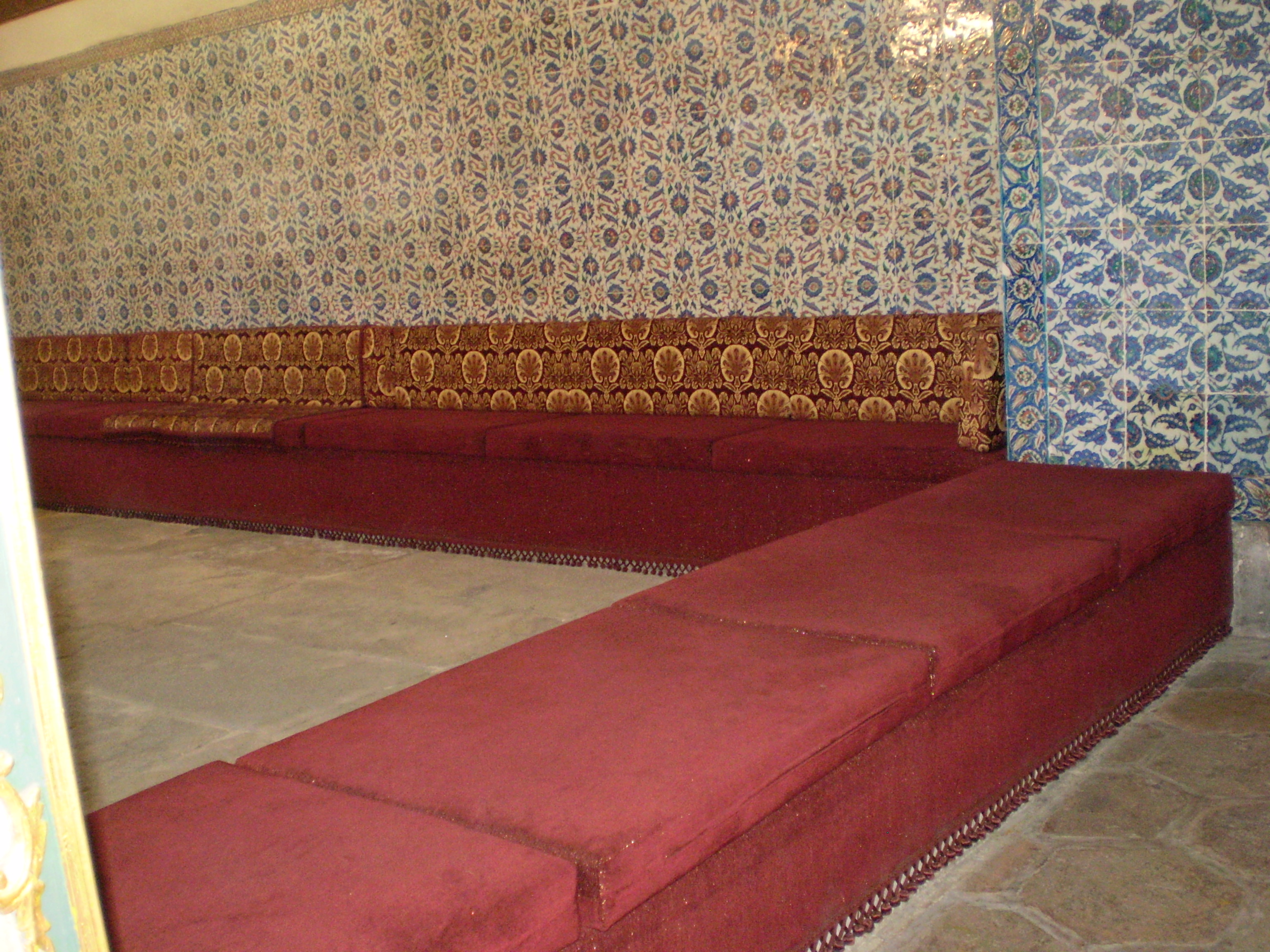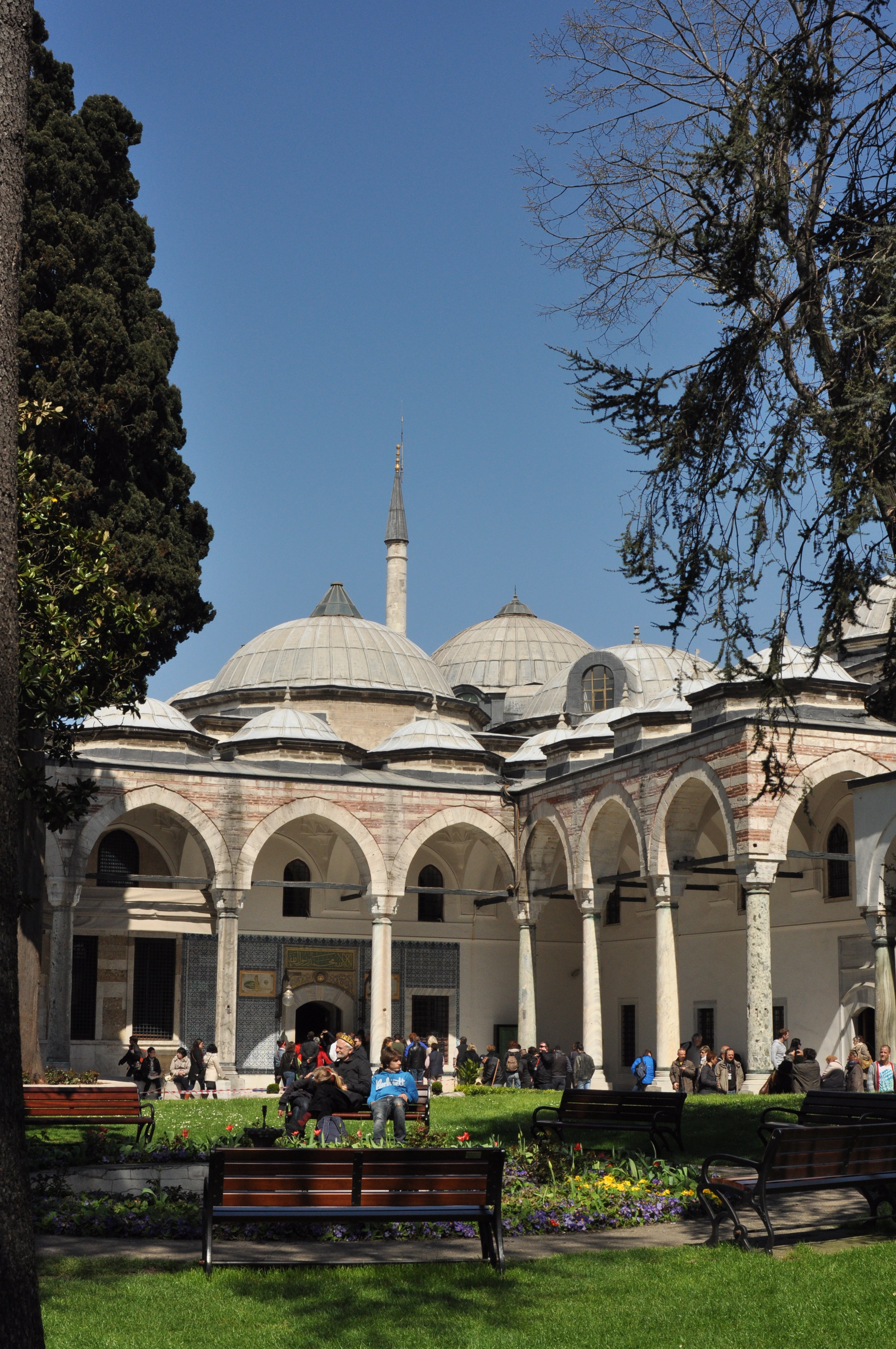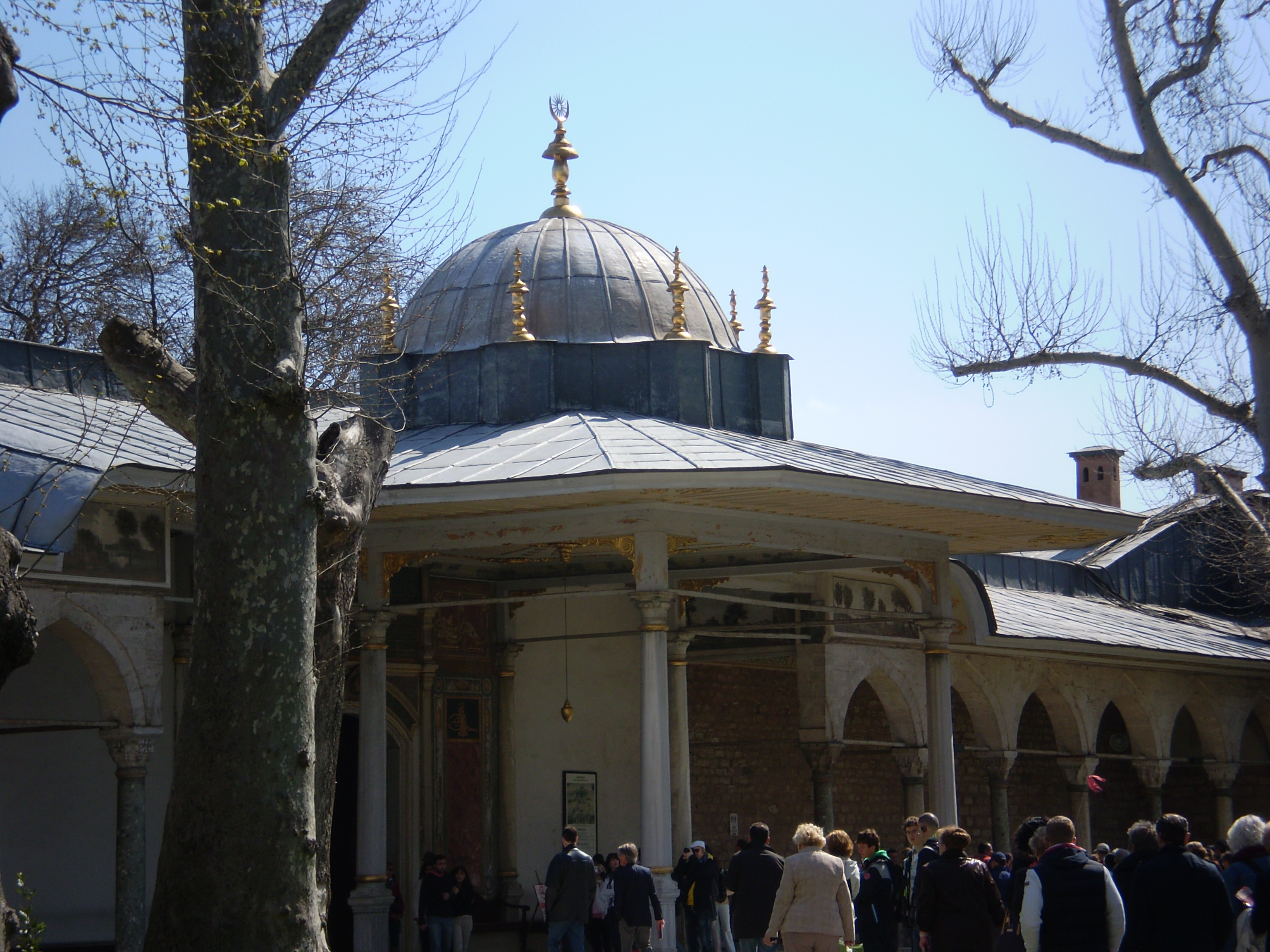 Built between 1460-1478 for Sultan Mehmed the Conqueror, Topkapı Palace is definitely one of the crown jewels of Istanbul’s glory. The sprawling grounds have amazing views of the city, but with every amenity available inside, there would have been no reason to leave the grounds! Sultan Mehmed spared no expense in building his dream home–complete with a church, a library, audience chamber, and a harem. Of course wanting to contribute the grandeur, subsequent Sultans since Mehmed have built, rebuilt, and added to the palace grounds and structures. The result is varying architecture throughout the palace grounds. Again, there wasn’t enough time to see everything, which meant picking and choosing. The only thing I’m sad we didn’t get to see was the Sultan Robe collection. There simply wasn’t enough time, as the line for that exhibit was approaching 2 hours, and so we decided to use that time strolling the grounds and visiting all the other exhibits.