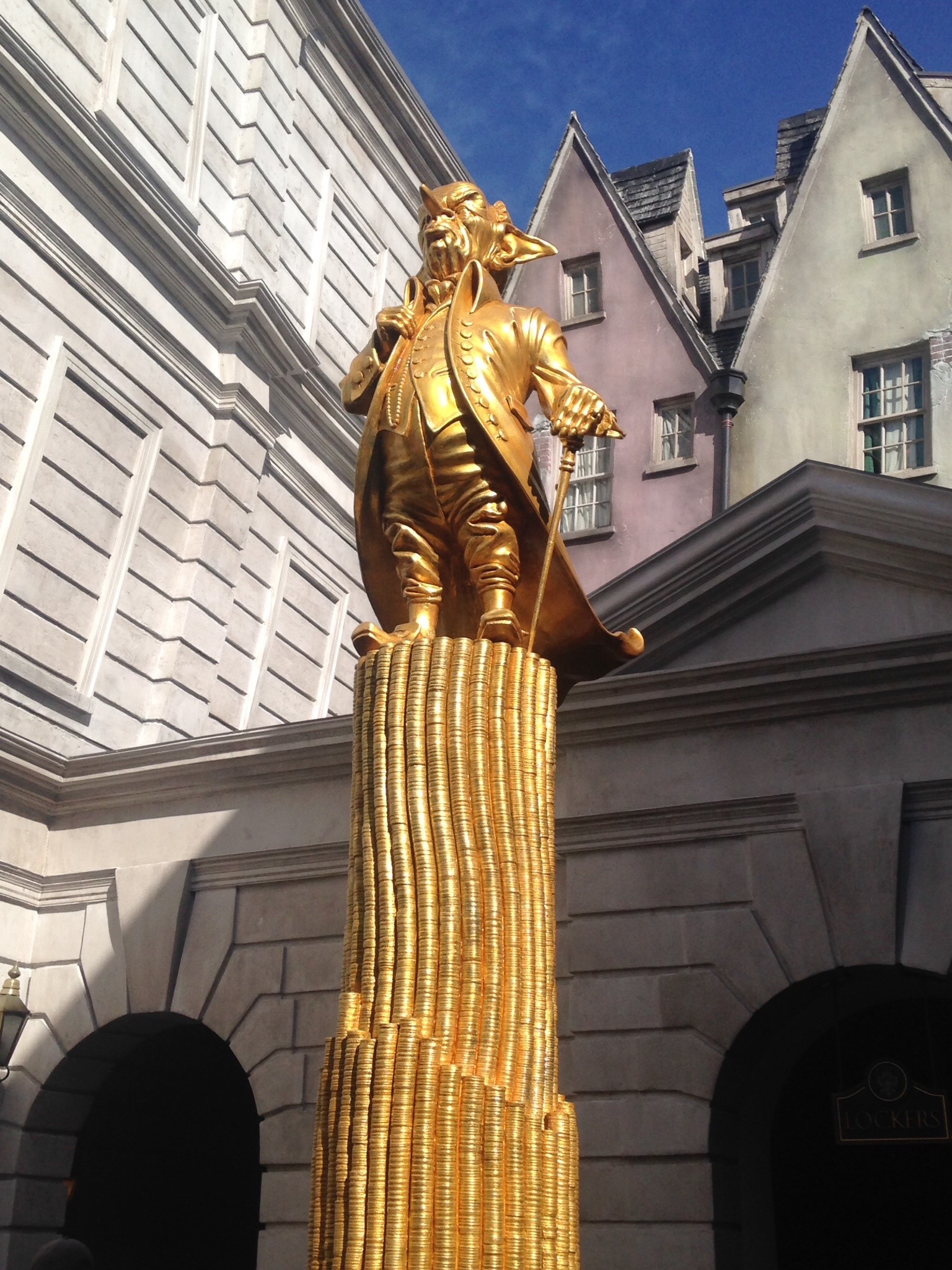 There was one ride in Diagon Alley, which was inside Gringott’s bank. Basically, you walk through the bank and then ride down into the vault area–just don’t mess with the goblins…or the dragon!