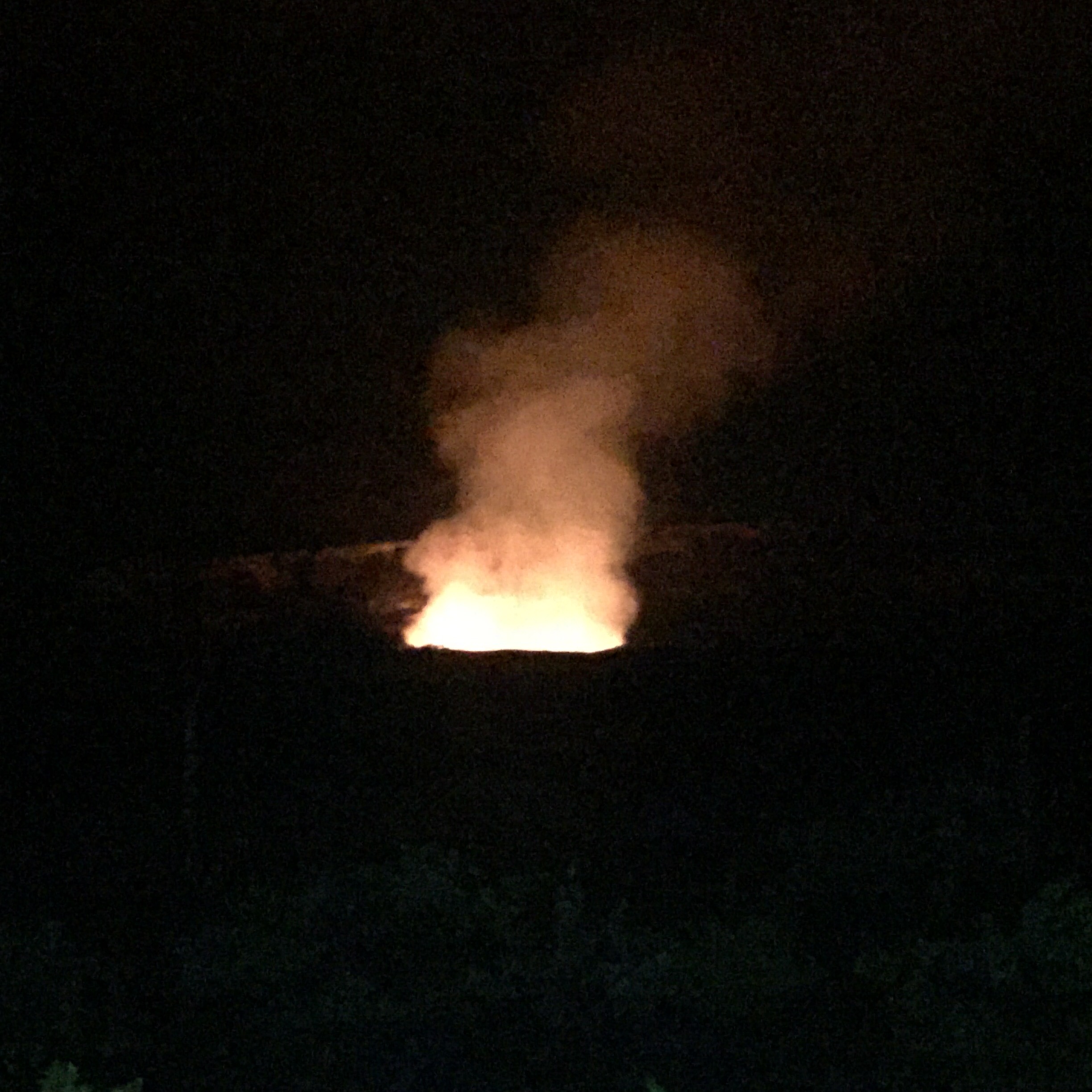 It is the glow of the Kilauea caldera from the Observation point at the Hawaii Volcanos National Park. I’m 99.9875% sure April has a sharper picture taken with her camera rather than with my iPhone, but I’m 100% sure if I went looking for it, I would miss the deadline for posting this today!