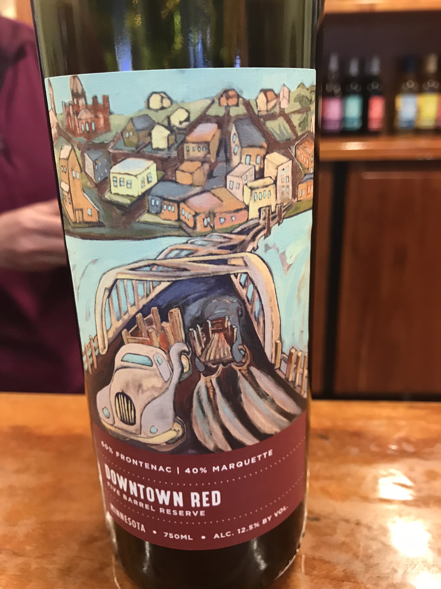 Then it happened. After departing Texas, I went back to NYC via an extended stopover in Minnesota. On Day 2, April took me to a little town on the St. Croix river called Stillwater. We were there for the tacos (that’s a story for another time)–but after lunch we wandered down the main street of the town, poking around the boutique shops in search of a brewery/winery/distillery (Stillwater has some of each and long ago, April learned long ago that a happy Shez is a Shez plied with alcohol and coffee and food). We saw the Northern Vineyards Winery and headed inside.