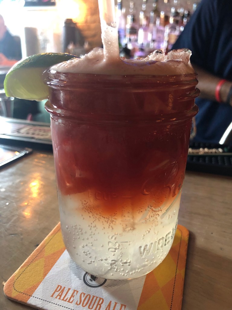 Rum Runner—light and dark rums, banana liqueur, blackberry liqueur, orange juice, pineapple juice, grenadine. Pretty sure I had one of these in Key West. Maybe it was just a sip of Christi’s…either way, I don’t have a picture. But like most of the drinks on this list, it goes down really easily.