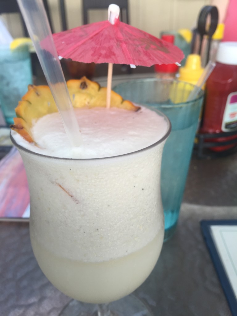 Painkiller—rum, pineapple, orange juice, and coconut cream. I can’t recall having one, but it sounds like they go down easily and the next morning isn’t going to be so fun.