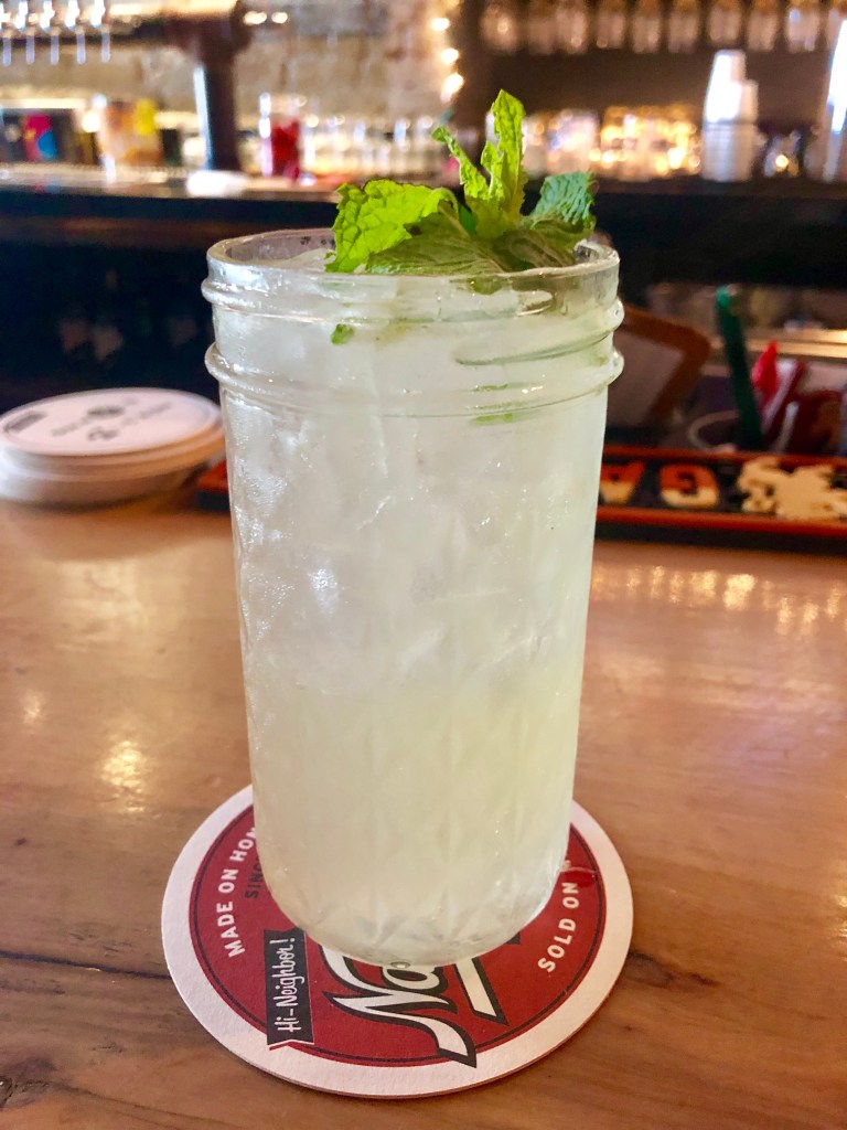 Mojito—rum, sugar, lime, and mint. It is my go-to summer drink, especially at our brunch spot around the corner.